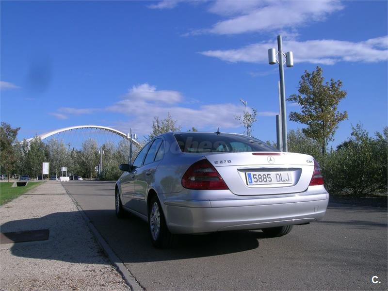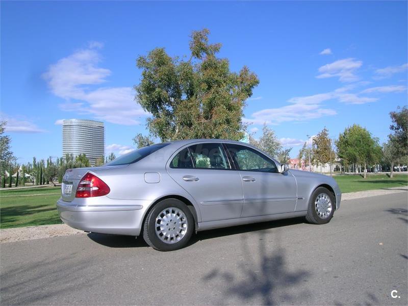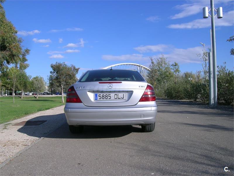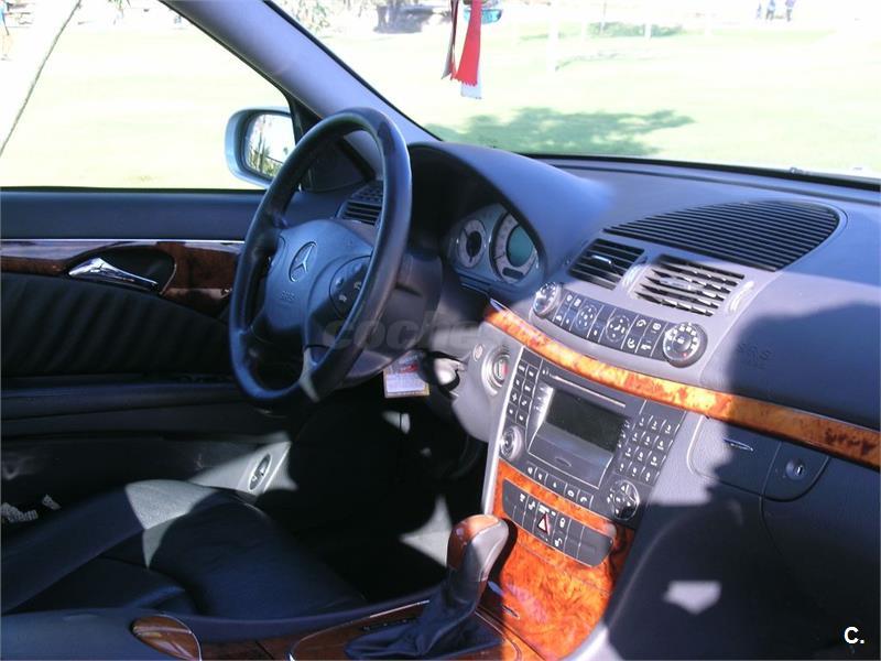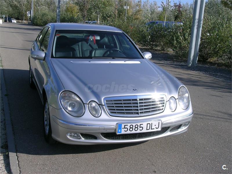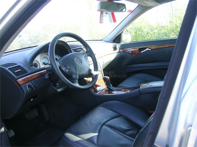Se vende Mercedes-Benz clase E 270d ELEGANCE, de 177 CV, color plata, en perfectísimo estado con todas las revisiones pasadas, la mayoría en la casa oficial Mercedes. El nivel de equipamiento es el más alto de gama con prácticamente todos los extras. Asientos de cuero con ajuste de posición automática, transmisión automática, navegador por GPS, retrovisores antideslumbrantes, luces de cortesía interiores y exteriores, calefacción trasera, lavafaros, apoyabrazos central trasero, equipo de sonido de alta fidelidad, etc. Ha estado siempre en garaje. Muy bien cuidado tanto de motor como de carrocería e interiores. No ha sufrido ningún golpe. Recomiendo verlo.
