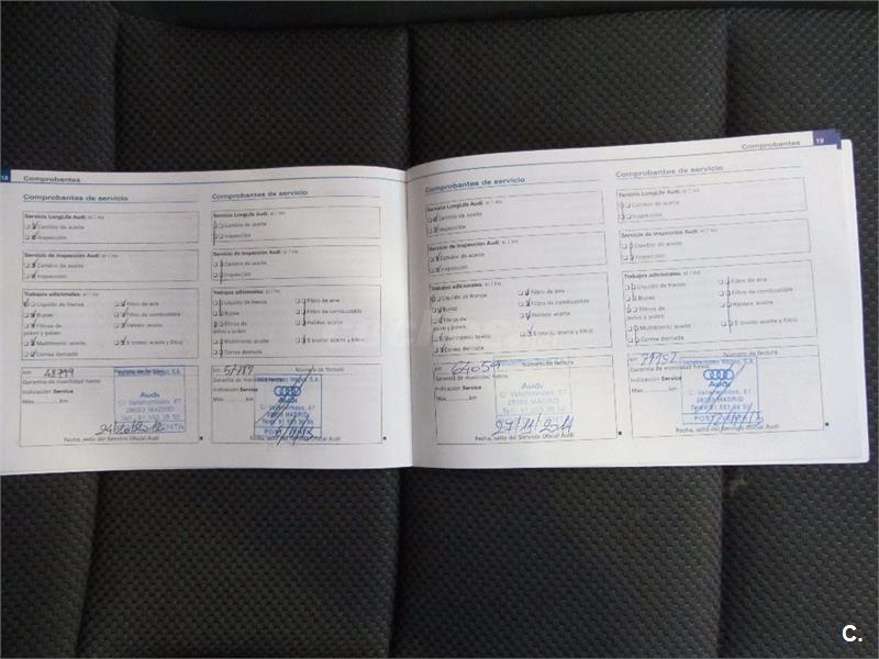 Historial de mantenimiento completo en AUDI - libro de revisiones - revisión de aceite y filtros al día - chapa, pintura e interior impecables - control de velocidad TEMPOMAT - conexión USB/IPOD/AUX - radio cd-mp3 - volante multifunción - espejos eléctricos - climatizador digital bizona - sensor de luces - ordenador de abordo - guantera central - elevalunas eléctricos - isofix - 4 ruedas en perfecto estado - comandos por voz - faros antiniebla - regulador de luces - regulador de intensidad del cuadro- 2 juegos de llaves -llantasde aleación - pintura metalizada - Gastos de garantía europea 12 meses: 300€. Gastos de cambio de titularidad: 200€.