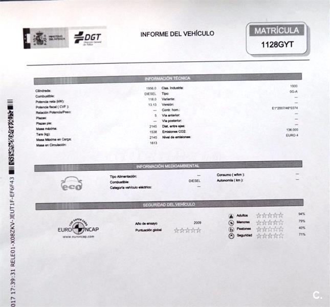 Equipamiento de serie: Asiento conductor altura regulable, Cinturones con pretensores, Asiento trasero abatible, Dirección asistida, antirrobo pasivo,Pintura Metalizada.Radio cd., DISPONIBLE PARA REVISION EXTERNA.PRECIO NO NEGOCIABLE.