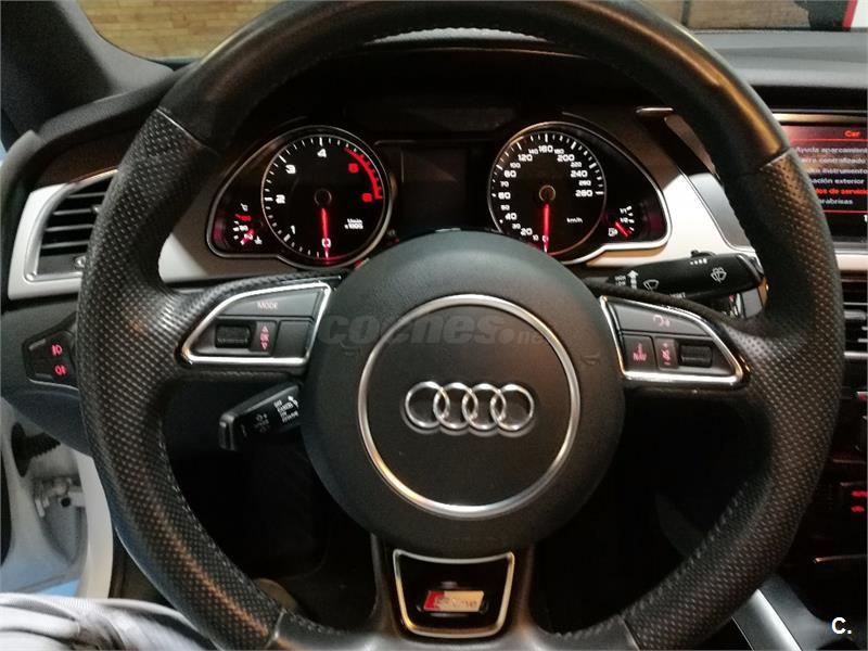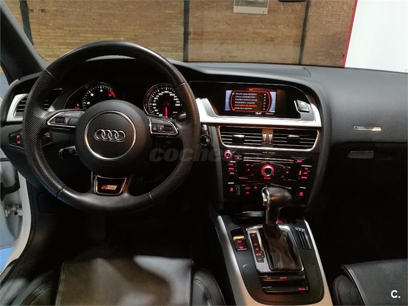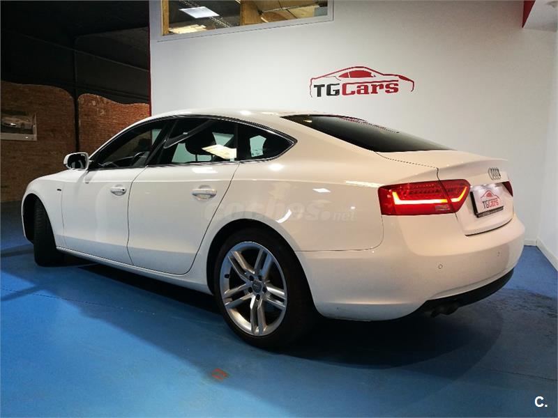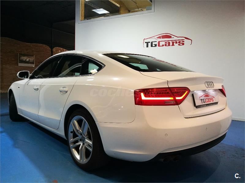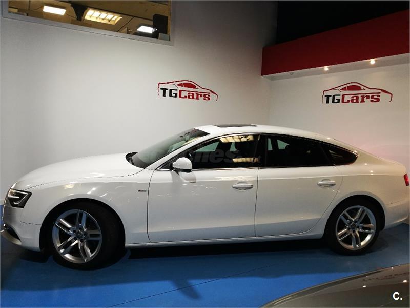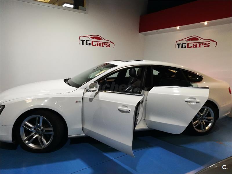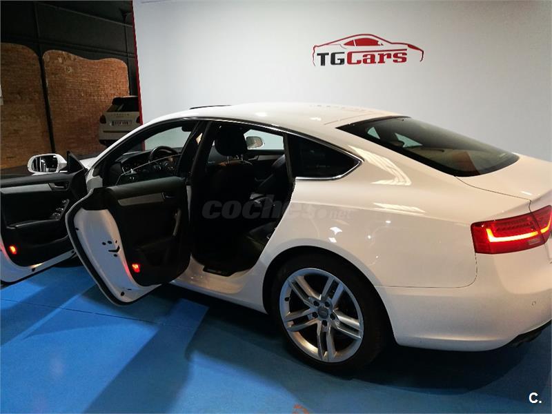 Audi A5 Sportback 2.0 TDI 177cv Multitronic S-Line interior y exterior. Vehículo nacional con dirección asistida, tapiceria de cuero, elevalunas eléctricos delanteros y traseros, airbag, climatizador digital, sistema GPS, equipo Audi MMI, reproductor/Radio CD, faros anti-niebla, llantas aleación, cierre centralizado con mando a distancia, control tracción, ABS, control estabilidad, llantas de aleación, luces diurnas, luces Xenon, asientos deportivos, ordenador a bordo, volante deportivo multifunción, sensores de lluvia, enganche, manos libres, techo solar eléctrico, sensores de aparcamiento delanteros y tarseros. Aceptamos vehículo como parte de pago. Este anuncio esta sujeto a posibles desviaciones. FINANCIACIÓN A SU MEDIDA. Llamar antes para concertar cita.