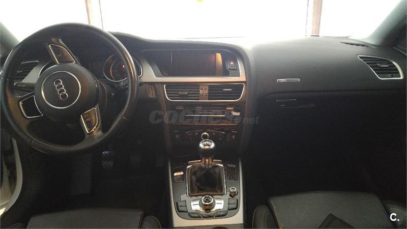 vendo audi a5 sportback sline exterior y interior, con muchos extras: camara trasera, gps, pantalla grande, cristales tintados, asientos de cuero , retrovisores abatibles y calefactables, sistema start-stop, bluetoth, tarjeta memoria, aux,sensores de presion de neumaticos, sensor de luces y lluvia, alarma... nunca accidentes ni golpes, libro sellado en concesionario oficial, mantenimiento al dia en concesionario,coche nacional,doi garantia de 6 meses, ultima revision con 150.000 km, la proxima toca con 180.000, siempre duerme en garaje