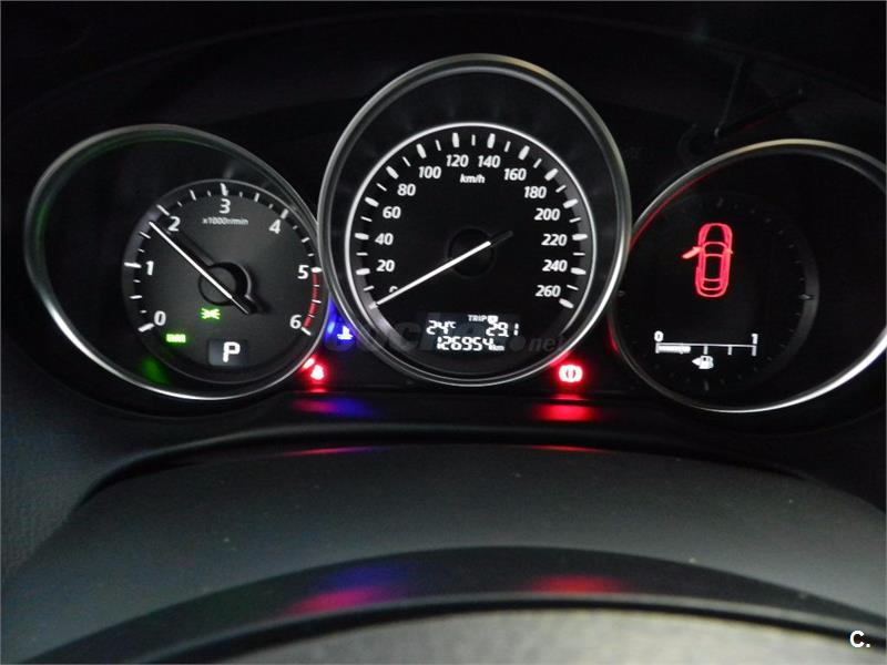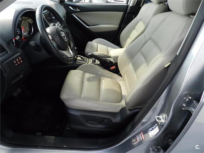MAZDA MODELO: CX5 2.2 LUXURY 5P 4x4 AT. EQUIPAMIENTO: cambio automático, regulador de velocidad, ordenador a bordo, volante multifunción, cierre centralizado, llantas aleación, elevalunas eléctrico, climatizador bi-zona, radio CD MP3 con USB y auxiliar, sensor de aparcamiento delante y detrás, techo panorámico y solar, pantalla táctil, sensor de luces y lluvia, 6 velocidades, manos libres, retrovisores eléctricos, navegador, luces led, asientos de piel y calefactables, pack safety valorado en 3000 €, etc ...