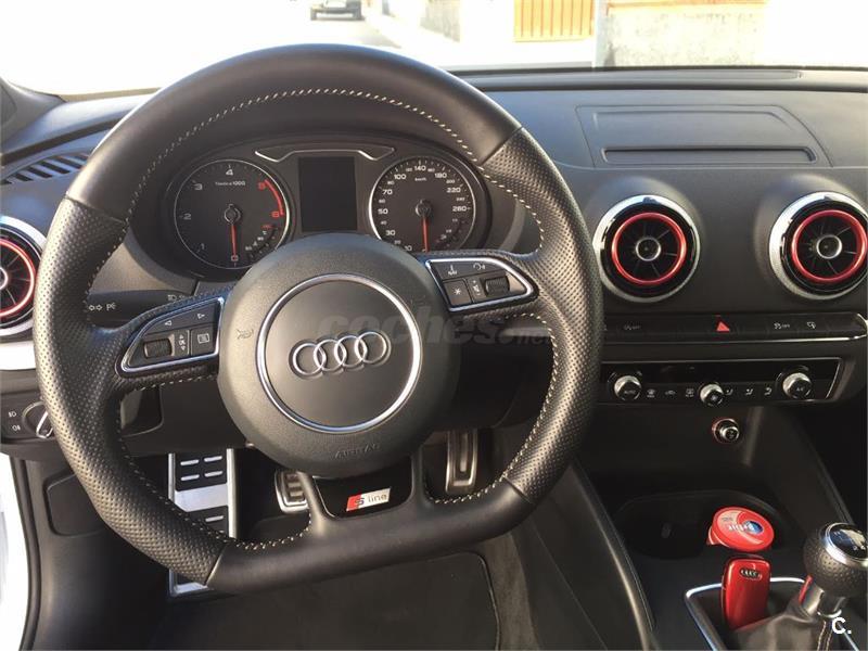 -interior S Line con asientos en piel, techo interior con revestimiento en negro y pedales deportivos. Volante achatado en cuero perforado