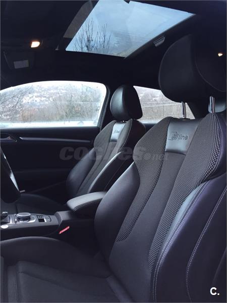 A3 2.0TDI 150 CV SLINE interior y exterior. Muy cuidado. Impecable de pintura. Equipamiento full equip: Navegador Profesional con capacidad para tarjetas SD, USB, Faros led, llantas 18´, techo solar panorámico, bluetooth, climatizador dual, volante achatado, etc.. Neumáticos Michelin Pilot Sport 3 casi nuevos los 4. Revisones en Audi con libro y facturas.