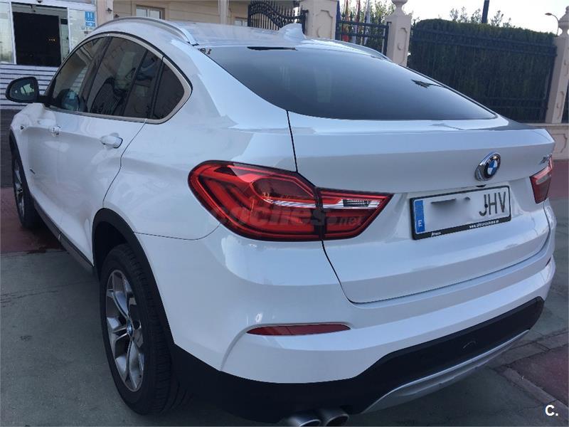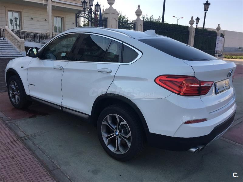 BMW X4 Xdrive 30d 258cv ... Cambio AUTOMATICO 8 VELOCIDADES con levas en el volante tipo F1 y 4 modos de conduccion(ECO-CONFORT-SPORT-SPORT+) ... NAVEGADOR profesional a color CON CAMARA DE VISION TRASERA ... FAROS XENON con LED de luz diurna ... ASIENTOS EN CUERO 'Nevada' Mokka/aplicación y repujado Schwarz ... PARKTRONIC del. y tras. ... PORTON TRASERO CON APERTURA Y CIERRE ELECTRICO ... CLIMATIZADOR DIGITAL BIZONA ... TLF por BLUETOOTH ... ASISTENTE cambio de carril y Asistente de luz ... Espejos retrovisores interior y exteriores con ajuste automático anti-deslumbramiento y ABATIBLES ... MOLDURAS interiores Dark Copper de brillo intenso ... Carriles longitudinales para la baca Aluminium satinado ... ECT ... KM CERTIFICADOS ... PVP 32.995€ +21% IVA=39.995€ ... TRANSFERENCIA +150€ Y GARANTIA 12 MESES OPCIONAL + 1.000€ ...