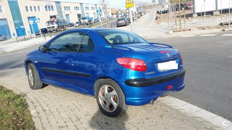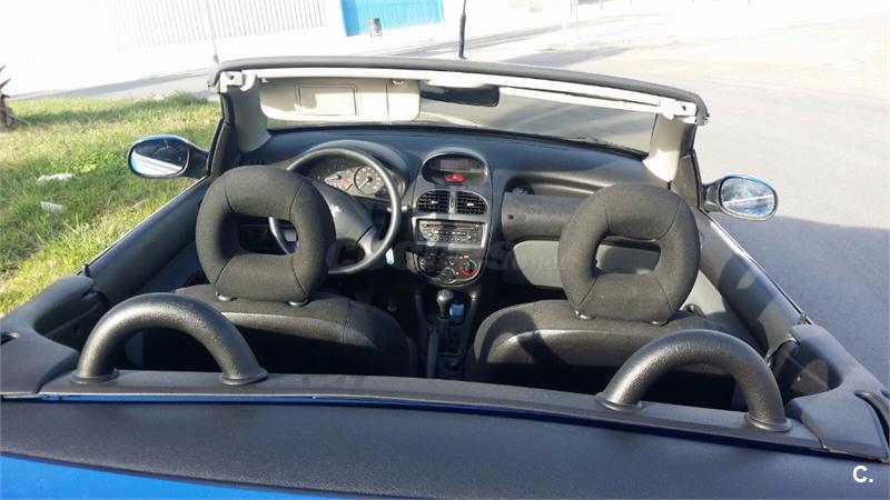 CABRIO Peugeot 206 Coupé Cabrio, espectacular descapotable con un año de garantía, 110 CV, año 2002. ITV hasta mayo 2017 con todas las revisiones al día y en perfecto estado. Llama para quedar y verlo sin ningún compromiso. Calle Virgen de Guadalupe 2, salida 13 de la Ronda de Dalt. Web: mcauto13. com . Color Azul.