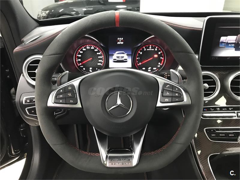 MERCEDES C63 AMG S EDITION 1. Vehículo de reestreno, todos los extras disponibles en carta, todas las revisiones en mercedes, valor nuevo 168.000€. Frenos cerámicos, buckets amg, techo panorámico, sonido burmester, navegador map pilot, sensores de aparcamiento con cámara trasera, sistema de advertencia de colisión, modos de conducción (sport, race, eco), asientos calefactables eléctricos con memoria, paquete carbono completo, arranque y apertura sin llave,head up display, suspensión dinámica activa, alerta involuntaria de carril, autoblocante amg, luces dinámicas plus, funda original de mercedes. CAMBIO DE NOMBRE Y GARANTIA DE 12 MESES INCLUIDO EN EL PRECIO. Posibilidad de financiación.... automotivemotor.es