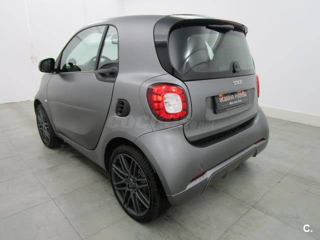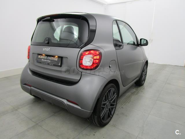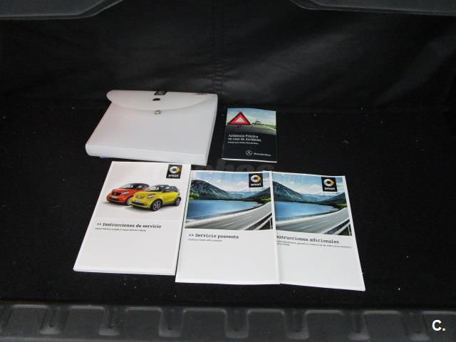 Airbag en la zona de las rodillas, Airbags laterales, Airbags para conductor y acompañante, Aire acondidionado, Asiento del conductor ajustable en altura, BRABUS paquete deportivo, Calandra del radiador black, Carcasas de los retrovisores exteriores en el color de célula tridion, Carcasas de retrovisores exteriores, en negro, Cierre centralizado con telemando, señal óptica de cierre y bloqueo de arranque, Cinturón de seguridad delantero con pretensor, Columna de la dirección ajustable en altura, Consola central con cajón, Control de presión del neumático, Cuadro de instrumentos con display TFT de 8,9 cm (3,5") a color, Código de dirección para las lineas, Depósito de combustible (35 litros), Dirección directa, Documento COC EU6 sin certificado matricul. p. II, Elevalunas eléctricos, Enchufe de 12 voltios, Estor cubreequipajes, Estor cubreequipajes, Fabricante de neumáticos no especificado, Faros halógenos H4, Levas del cambio, Luces diurnas de LED, Modificaciones técnicas, Neumáticos de verano, Ordenador de a bordo, Paquete de confort, Paquete visibilidad smart, Piezas adicionales para países suave, Portagafas para conductor, Privacy Glass, Programa electrónico de estabilidad, Protección para peatones, Reloj / cuentarrevoluciones, Servofreno de emergencia ampliado, Sistema de audio, Sistema de frenos (ABS), Sistema de parada y arranque, Soporte para smartphone, TEMPOMAT, TIREFIT, Tapa de mantenimiento con cerradura, Volante de cuero, cinturón de seguridad, counter units in kilometres, edition nightorange, guantera cerradiza, mando al distancia, manual de uso en español, rear spoiler, recon. enganche cinturon, retrovisores eléctricos, sensor de lluvia/de luz, tachometer azur, tapizado tela, techo panoramico, twinamic Cambio de doble embrague de 6 velocidades, with antigrip protection, without color of interior storage
