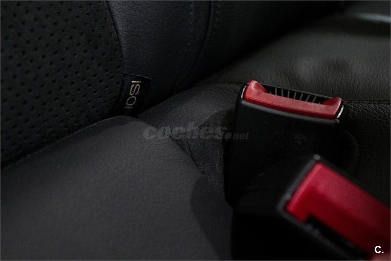 - Tapicería Cuero/Alcántara deportivos con logo bordado en cabeceros y costuras rojas, asientos delanteros calefactados