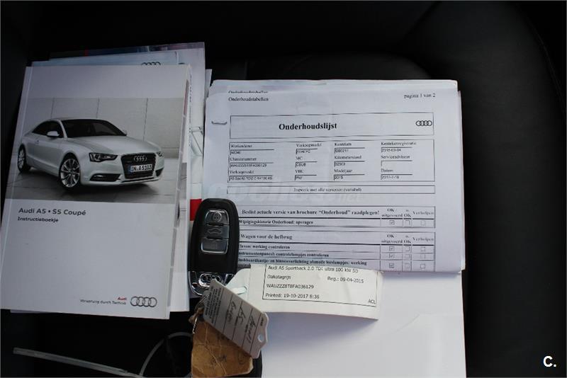 AUDI A5 SPORTBACK 2.0 TDI 150CV S-LINE 5 PLAZAS 6 VEL,primera matriculacion 27-11-2015,acabado deportivo s-line,faros de xenon con luz diurna, asientos deportivos electricos de piel con calefaccion,sensores de aparcamiento,navegacion profesional,cierre centralizado,climatizador automatico bizona,bluetooth,volante deportivo multifuncion,sensor de llubia,llantas 18 pulgadas con neumaticos nuevos,todos los mantenimientos em concesionario oficial audi,mejor ver y provar....... impecable.