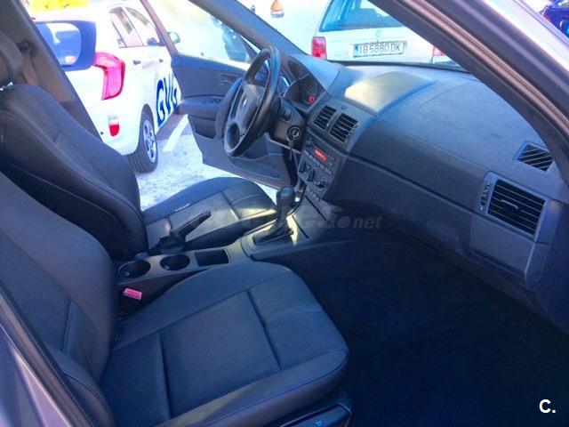 BMW X3 2.5 Automatico de 192cv. en impecable estado tanto interior como exterior. Vehiculo de una sola propietaria, con todas las revisiones pasadas puntualmente. Muy cuidado, esta como nuevo!! Consumo muy ajustado. Mucho equipamiento, ABS, ESP, climatizador bizona, asientos en cuero, radio cd, bluetooth, llantas de aleación, control de velocidad, sensores de parking delanteros y traseros, etc. Se entrega totalmente revisado, y con 1 año de garantía. Aceptamos coches como parte de pago. Llamenos para concertar visita.