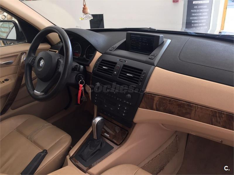BMW X3 3.0D AUTOMÁTICO. NACIONAL, con libro de mantenimiento. Se entrega en perfecto estado y se regala la limpieza integral del vehículo. Equipado con: Cambio Automático, Tapicería de Cuero, Navegador, Faros de Xenón, Techo Panorámico, Sensores de Aparcamiento, Estriberas, Llantas de 18".