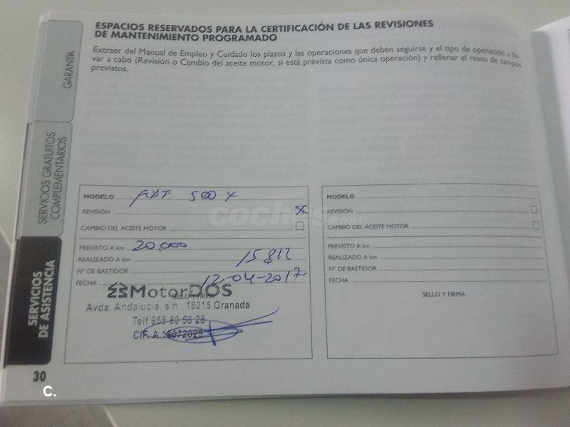 FIAT 500X CROSS PLUS 4X4 140CV. ¡¡¡OCASIÓN!! 22.000 KILÓMETROS. Certificados por escrito. INMEJORABLE ESTADO tanto interior como exterior. Un solo propietario,libro de mantenimiento sellado en concesionario oficial. Transferencia y GARANTÍA DE 1 AÑO A NIVEL NACIONAL INCLUIDAS EN EL PRECIO. Opción de 2 años de garantía y mantenimiento. Luces de xenón,sensor de luces y de lluvia, sensor de aparcamiento,apertura de puertas sin llave,volante multifunción,control de velocidad,manos libres bluetooth, entrada USB, entrada auxiliar de audio,música en streaming, GPS con aviso de radares, repsosa brazos de conductor, tres tipos de conducción, rueda de repuesto de tamaño normal,ordenador de abordo, airbags frontales, laterales y de cortina, clima bizona, faros de niebla, llantas de aluminio. Posibilidad de recoger su vehículo como parte del pago.! FINANCIACIÓN A SU MEDIDA¡ Somos Concesionario Fiat, Abarth, Alfa Romeo, Lancia, Jeep, Chrysler y Dodge.