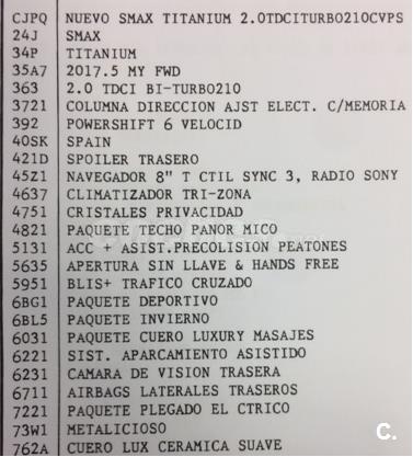 INTERIOR 7 plazas, asiento eléctrico del conductor y con memoria, asientos delanteros calefcatables y con aire acondicionado, funcion masaje en asintos delanteros, pantalla frontal con navegador Ford, volante multifuncion con levas, ordenador de abordo, etc