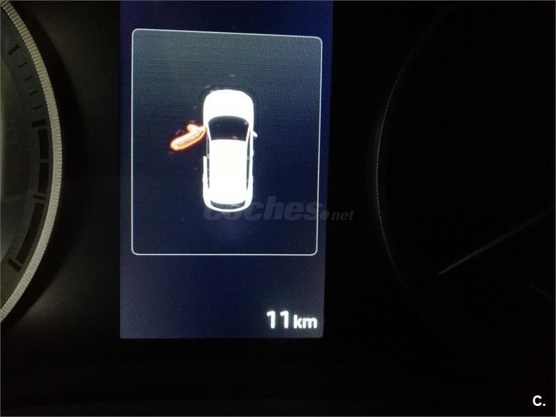 EQUIPAMIENTOAUTOMÁTICOAdvertencia de colisión frontal con frenada automát de emerAirbags de cabeza delanteros y traseros Airbags laterales delanteros Alerta de aproximación de tráfico trasero (RCTA) Antibloqueo de frenos (ABS) Asistencia a la frenada (BAS) Cámara de visión trasera Capó activo para peatones Control de arranque en pendientes (HAC) Control de presión de los neumáticos (TPMS) con indicador Detección de vehículos en ángulo muerto (BSD) Detector activo de cambio de carril (LKAS) Distribución electrónica de frenado (EBD) Eco Indicador de conducción eficiente (propuesta de marchaFaros delanteros LEDFijaciones ISOFIX para sillas infantiles en asientos traseros Luces diurnas LED Ordenador de viaje con pantalla TFT Reconocimiento de señales de tráfico Retrovisores exteriores calefactables Sensor de aparcamiento delantero Sensor de aparcamiento trasero Asiento del conductor con ajuste lumbar eléctrico Asientos delanteros con ajuste de altura Asientos delanteros con calefacción Climatizador bizona Encendido y parada automáticos del motor (ISG) Llave inteligente con botón de arranque y detector de proxim Luces automáticas Retrovisores exteriores plegables eléctricamente Sensor de lluvia Techo solar panorámico practicable (SKY) con cortinilla de techo solar eléctrica Pilotos traseros LED Retrovisores exteriores en color carrocería Pantalla táctil Conexión Bluetooth para teléfono móvil Navegador Llantas de aleación 19” Rueda de repuesto del mismo tamaño que las otras cuatroControl de descenso de pendientes