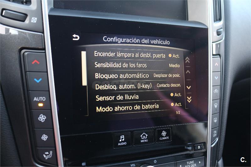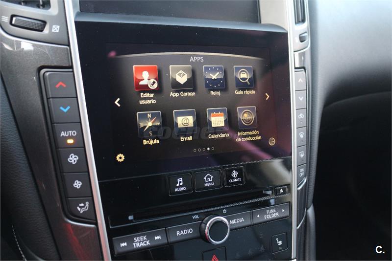 AUTOMÁTICO SECUENCIAL, CUERO, GPS, SENSORES APARCAMIENTO DEL Y TRAS, ASIENTOS CALEFACTABLES, CLIMATIZADOR BIZONA, RADIO CD, LLANTAS 17", VOLANTE MULTIFUNCIÓN... NEUMÁTICOS CON 5MM. TODAS LAS REVISIONES EN CONC. INFINITY OFICIAL, LA ÚLTIMA CON 55.230KM. INFORME DE INGENIERO EXTERNO PARA GARANTIZAR KILOMETRAJE Y ESTADO. SE ENTREGARÁ CON LA ÚLTIMA MATRICULA EXPEDIDA POR LA DGT. GARANTIA INFINITI OFICIAL HASTA MARZO DE 2019.