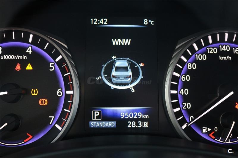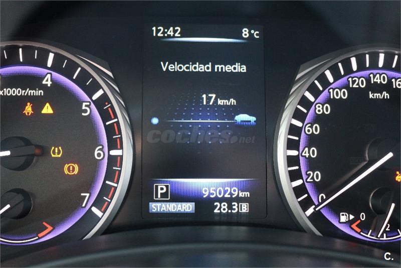 AUTOMÁTICO SECUENCIAL, CUERO, GPS, SENSORES DE APARCAMIENTO DEL Y TRAS, ASIENTOS CALEFACTABLES, CLIMATIZADOR BIZONA, RADIO CD, LLANTAS 17", VOLANTE MULTIFUNCIÓN, ETC. NEUMÁTICOS CON 5MM. TODAS LAS REVISIONES EN CONC. INFINITY OFICIAL, LA ÚLTIMA CON 55.230KM. INFORME DE INGENIERO EXTERNO PARA GARANTIZAR KILOMETRAJE Y ESTADO. SE ENTREGARÁ CON LA ÚLTIMA MATRICULA EXPEDIDA POR LA DGT. GARANTIA INFINITI OFICIAL HASTA MARZO DE 2019.