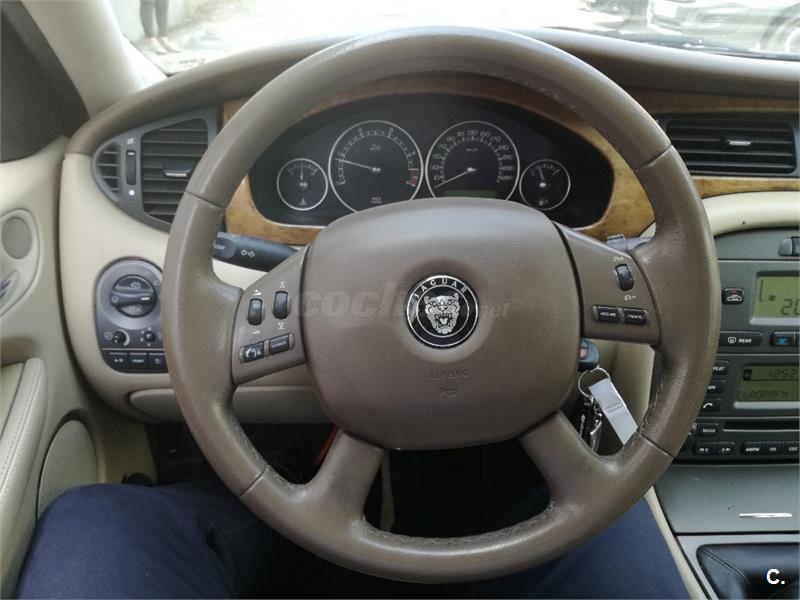Jaguar X-TYPE 2.2D Executive con motor Diésel de 4 cilindros y 2200 cc que alcanza una potencia máxima de 155 CV. La transmisión es de tipo Manual y dispone de un cambio de 6 Velocidades. Bien cuidado, funciona de maravilla. Equipado con: Tapicería de Cuero Beige. Apoyabrazos central delantero con caja integrada. Inmovilizador. Control de crucero. Antinieblas delanteros. Cierre centralizado con mando a distancia y dos juegos de llaves. Volante multifuncional revestido de cuero. DA, EE. Climatizador automático. Retrovisor exterior lado conductor y acompañante eléctrico y plegables automáticamente. Cristales tintados. Llantas de aleación ligera incluida la de repuesto. Frenos ABS. Etc. EL Embrague bimasa es nuevo con factura, así como aceite y filtros recién cambiados. POR QUE NO DARSE ESTE CAPRICHO DE TODO UN JAGUAR. Financiación a su medida. Aceptamos coche como forma de pago previa tasación. GARANTÍA Tenemos tú VO. (consultar). Precio nuevo sin extras: 36.900 € (Precio del año 2007).