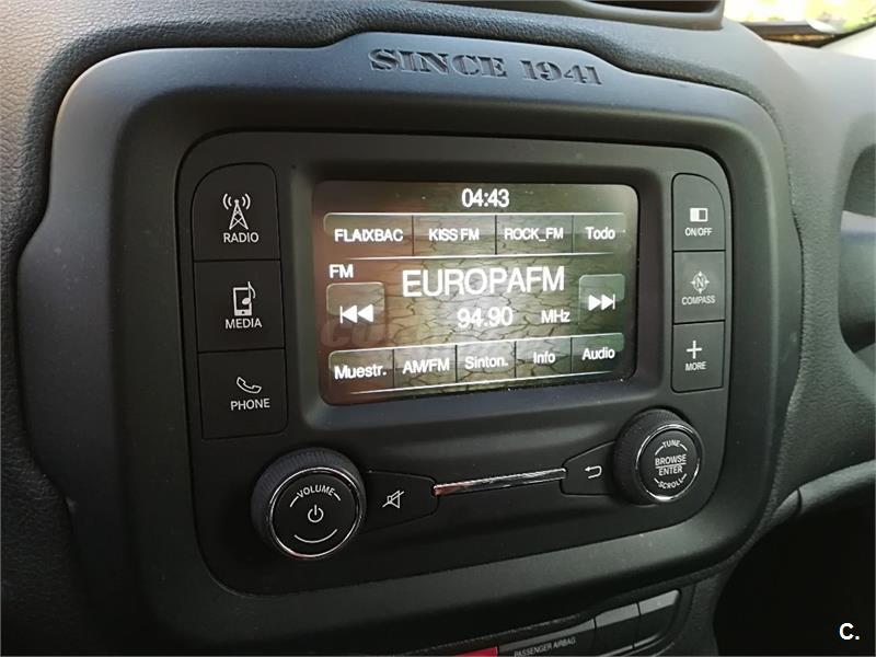 ···· MOTOR 2.0 DIÉSEL 120CV DE BAJO CONSUMO ···· TRACCIÓN 4X4 ···· Revisado y certificado por la red de concesionarios JEEP con 12 meses de garantía desde el día de la entrega. Equipado con: ABS · 8 Airbags · Cierre centralizado · Dirección asistida · Elevalunas eléctricos · Faros antiniebla · Llantas de aleación · Climatizador · Control de velocidad · Control de estabilidad y tracción · Ordenador · Radio CD con entrada USB · Cristales tintados · Tracción 4x4 · Techo solar · Bluetooth · Start&Stop...
