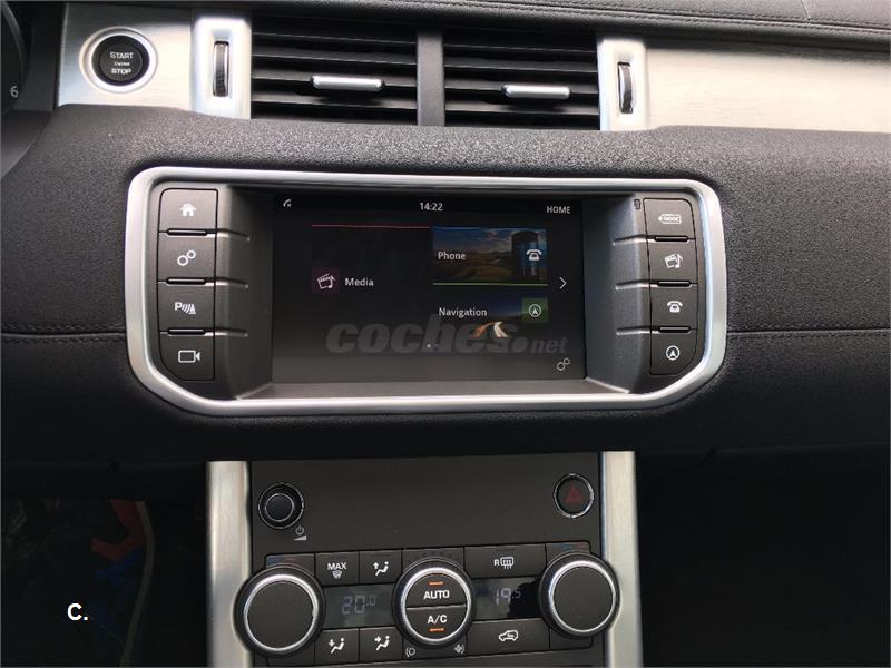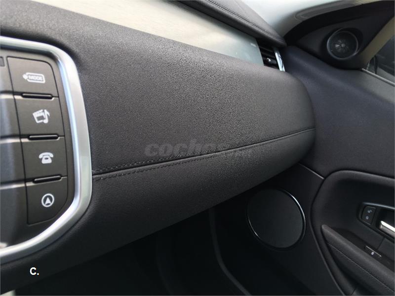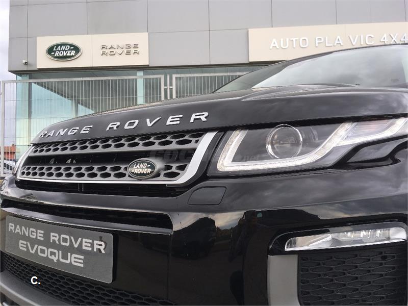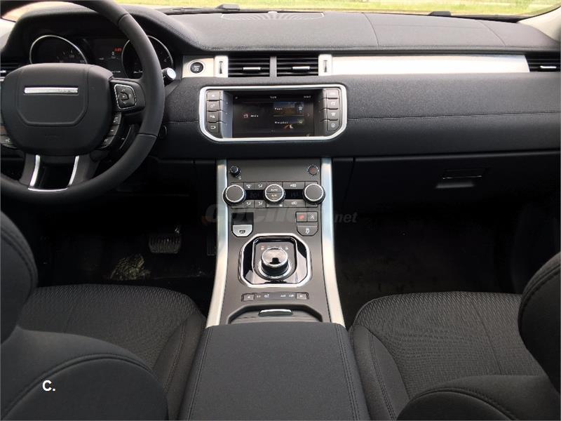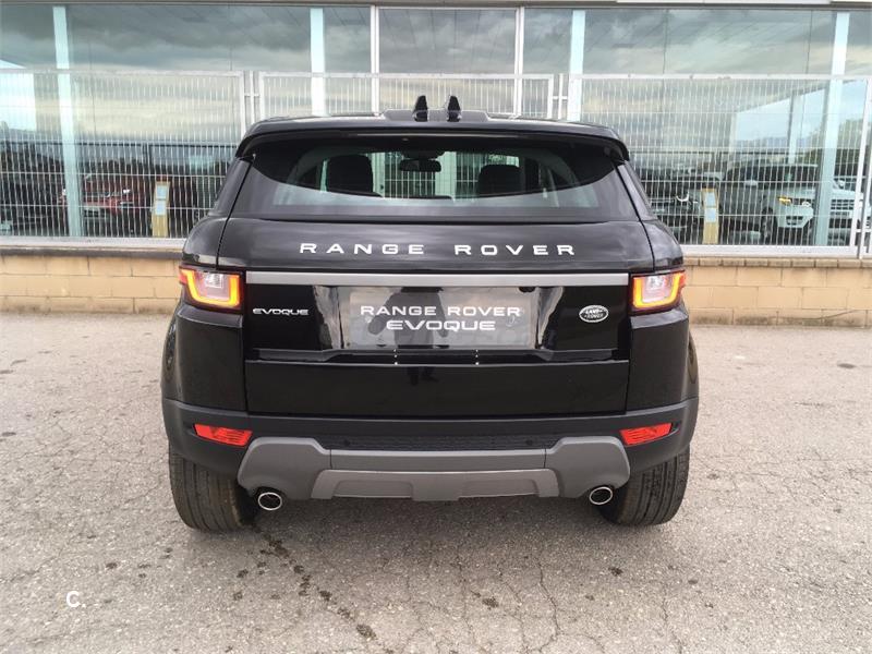 Range Rover Evoque 2.0L TD4 Diesel 110kW (150CV) 4x4 SE 5 puertas [2017] Color: Santorini Black Tapicería: Piel Grained Ebony/ Ebony OPCIONES INCLUIDAS: Lavafaros Anagrama Plata Evoque Salidas traseras de aire del climatizador Llantas de aleación de 5 radios 18" acabado - Style 506 "Sparkle Silver" InControl Touch Navigation con control de voz. SD navigation Cámara trasera de marcha atrás para ayuda al aparcamiento Asistencia al aparcamiento en línea y batería Apertura del maletero "Manos Libres" Techo Panorámico (incl. Panel interior eléctrico) Rueda de repuesto temporal de acero 18". Incluye Kit de herramienta rueda temporal Faros delanteros Xenón con nivelación automática y con línea LED característica Cambio inteligente de luces cortas a largas Luces antiniebla delanteras Acceso sin Llave Cambio automático de 9 velocidades PVP nacional: 54.202€ Oferta pago al contado: 47.309€ OFERTA ESPECIAL sujeta a financiación: 44.039€