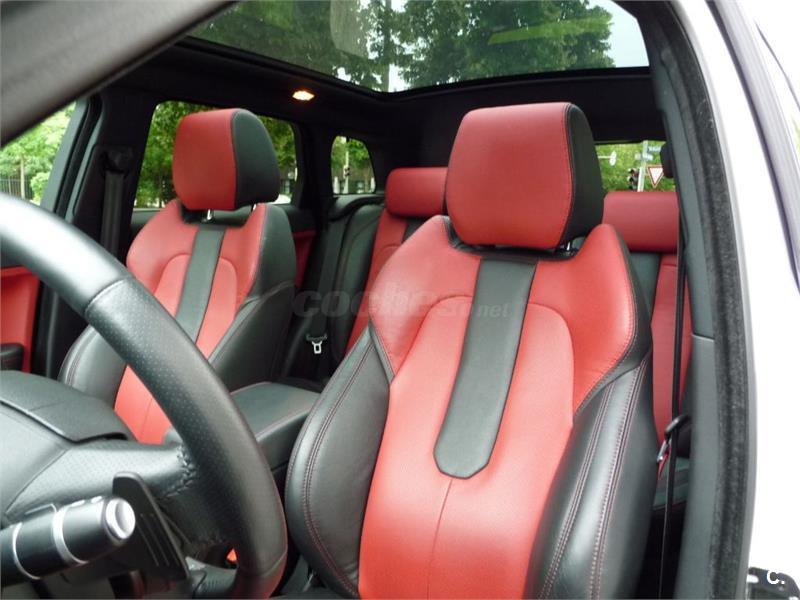 El coche es blanco, cinco puertas, cinco lugares, interior de cuero completo en dos colores negro y rojo.
