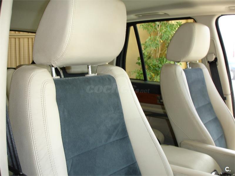 PINTURA PLATA BLANCO METALIZADO, CUERO Y ANTE EN COLOR BLANCO Y AZUL, CAMBIO AUTOMÁTICO, ASIENTOS DEPORTIVOS, NAVEGADOR CON PANTALLA TÁCTIL Y DISCO DURO, LLANTAS ALUMINIO NEGRO 20", BOLA REMOLQUE DESMONTABLE, FAROS BIXENON, SONIDO HARMAN KARDON, BLUETOOTH, ALARMA, ASIENTOS ELÉCTRICOS CON MEMORIA, CLIMATIZADOR 4 ZONAS, ESPEJOS ELECTRICOS ABATLIBLES, SENSOR LUZ Y LLUVIA, TEMPOMAT, CÁMARA MARCHA ATRAS, PARKTRONIC, RADIO DIGITAL, SUSPENSIÓN NEUMÁTICA, SISTEMA TERRAIN RESPONSE, FAROS LED, ARRANQUE SIN LLAVE, VOLANTE MULTIFUNCION,