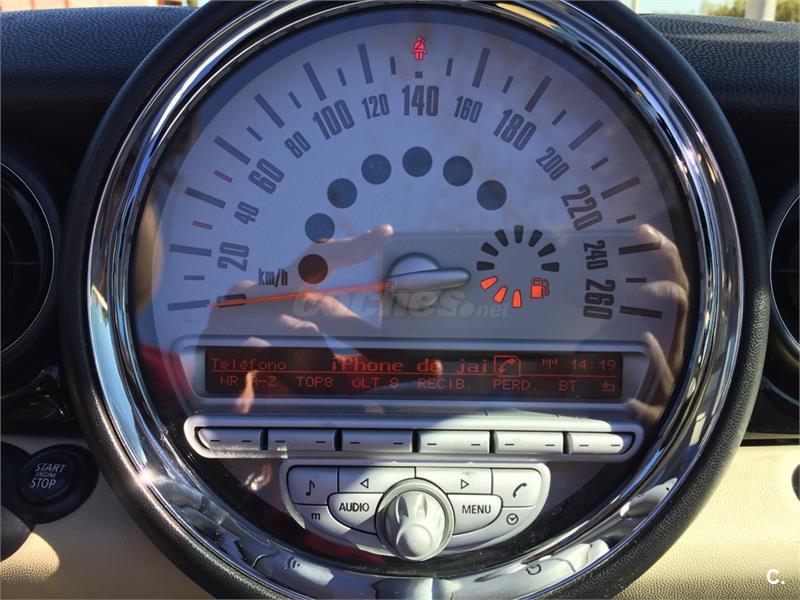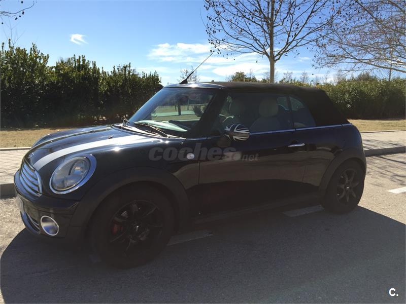 Hola Vendo mi Mini cooper cabrio del 2009 por la espera de un nuevo miembro a la familia. El coche es un juguete la verdad, tiene 120 CV y es súper divertido de conducir, sobretodo en días de sol en los que vas descapotado. Como extras tiene el pack multimedia para conectar el movil por bluetooth, conexión auxiliar USB y Aux, sensor de aparcamiento trasero, retrovisores con la bandera de UK y luz interior en puertas, techo y laterales traseros que puedes poner en diferentes colores (Rojo, Naranja, morado, rosa, azul..) asientos en cuero beige. El coche está al día de revisiones e ITV hasta 2019. Se puede ver y probar sin ningún compromiso en la zona de majadahonda. Cualquier cosa no dudéis en preguntar. Un Saludo