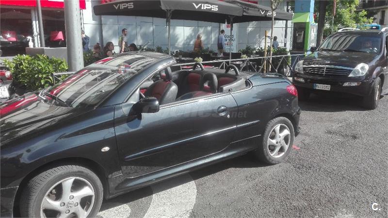 PEUGEOT 206cc Peugeot descapotable Va de maravilla. Con muy pocos kilómetros y sus revisiones hechas. Recién pasada la ITV. Tiene el asiento del piloto estropeado y el parachoques como se aprecia en las fotos algo roto. Por eso bajo tanto el precio. Por lo demás y más importante el coche está en muy buenas condiciones.frenos cambiados,aceite y filtros,aire acondicionado a la perfección, ruedas cambiadas. Negociable Urge!, cambio manual, 2 puertas, 95.000 kms. Año 2005.. Color Negro Combustible: Gasolina.