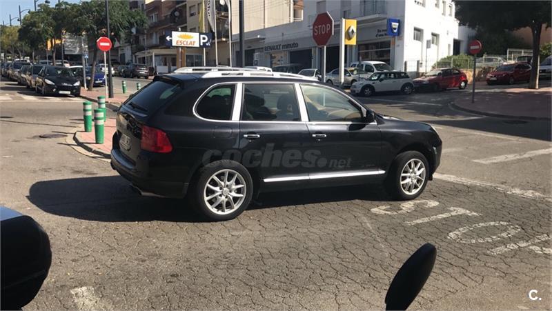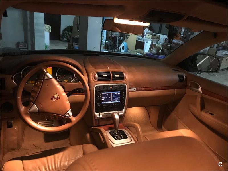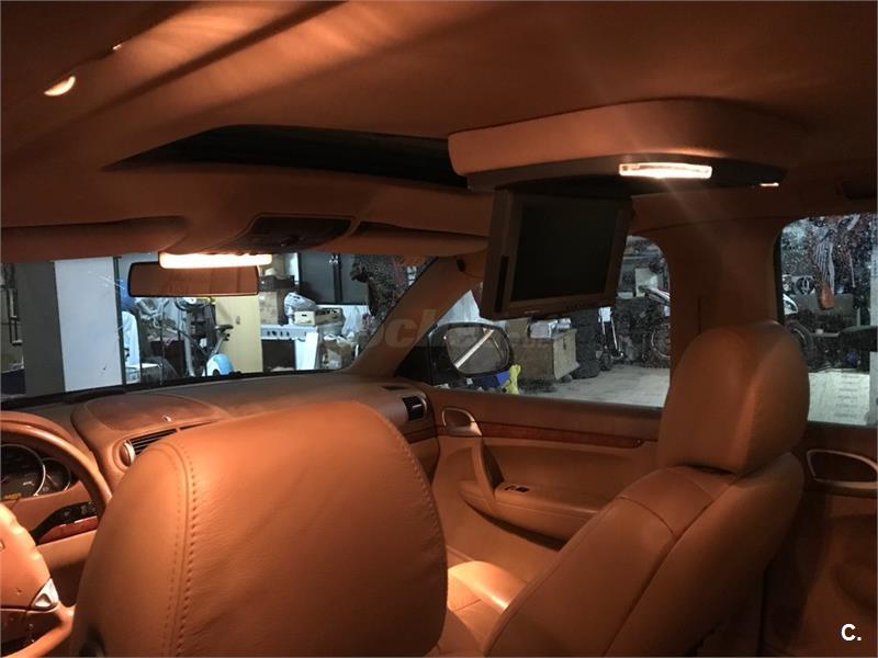 Porsche cayenne S, V8 , 340cv, siempre en garaje itv hasta 2018, revisado de motor y caja de cambios, km apuntados en ficha técnica desde su primera inspección de itv hasta la fecha. Extras: faros xenón, sensor de lluvia, techo solar, dvd y tv para pasajeros, asientos eléctricos de cuero beige, cambio automático 6v con levas en volante, volante multifuncional, teléfono, suspensión neumatica regulable ( dureza y altura ), clima bizona, calefacción asientos y volante, control de crucero, bola de enganche original ( sin estrenar ), sistema de navegación y tv, cargador de 7 cds, sistema de localización GPS, 3 llaves, dos juegos de llantas con neumáticos 19 o 20 a escoger.precio negociable.