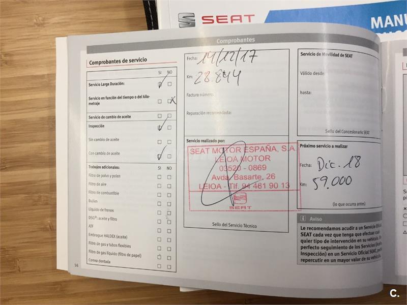 **Vehículo nacional con historial de mantenimiento completo en concesionario oficial Seat, último mantenimiento realizado el 14/12/2017 con 28.844kms.