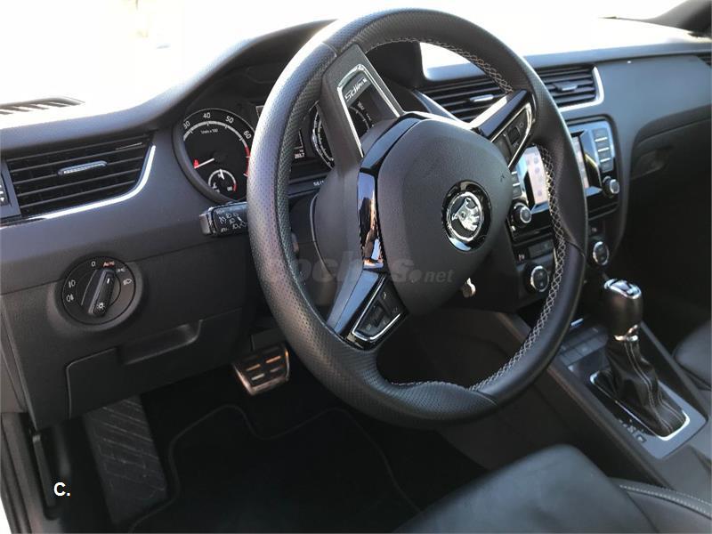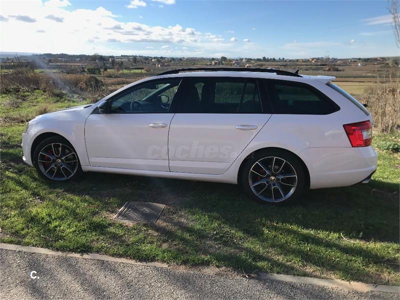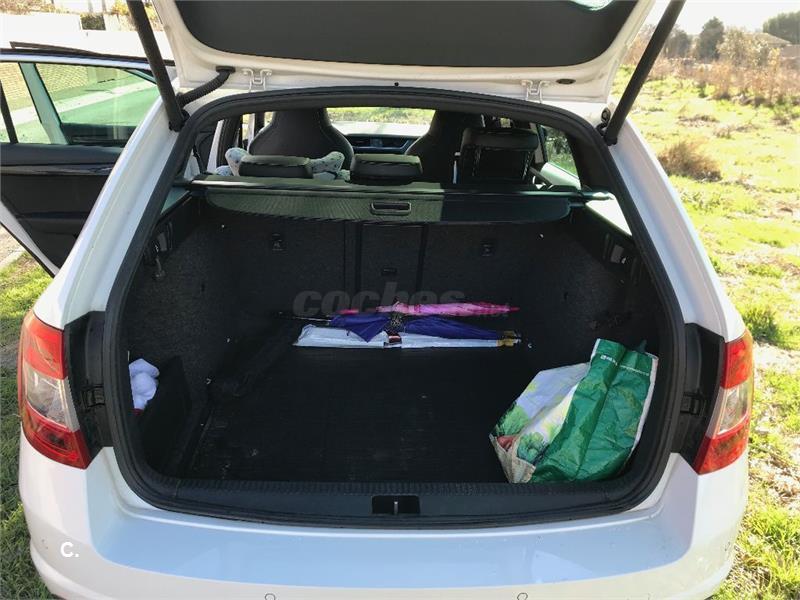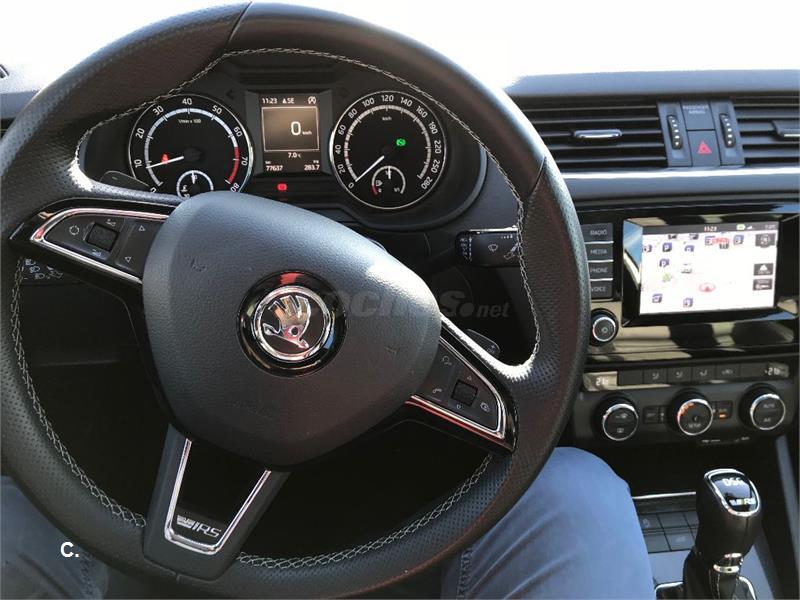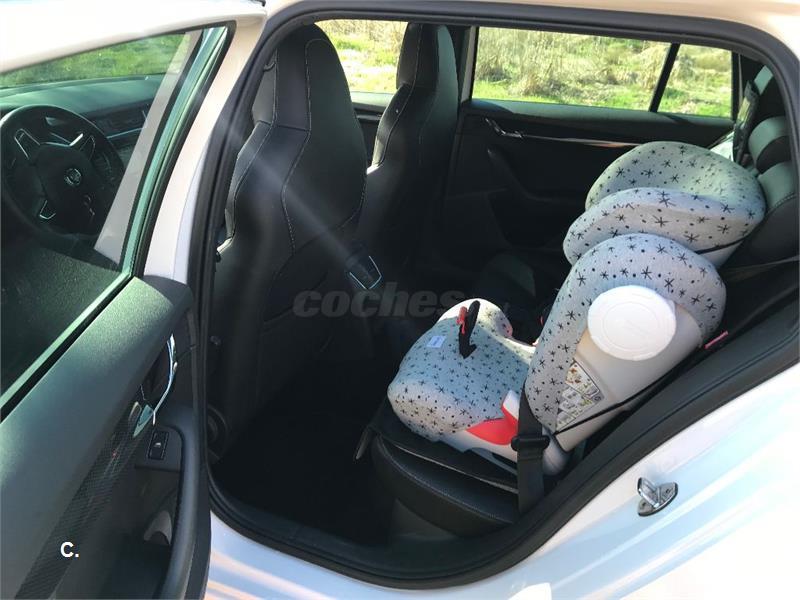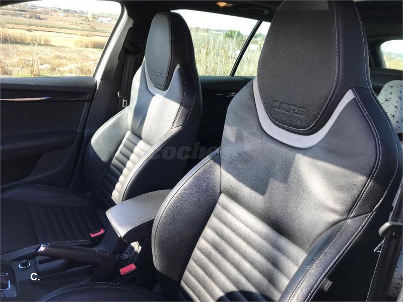 El coche es de Marzo de 2014. Gasolina 220 cv. El coche duerme siempre en garaje y está muy, muy cuidado. Interiores perfectos. Un único dueño. Los 4 neumaticos los cambié en Agosto, y pasó la revisión 'fuerte' ese mes también (cambio de aceite del cambio, pastillas, revisión general...) en taller Skoda oficial. Se compró con multiples opcionales: Sistema Navegación, Asientos backet en piel, paquete family (goma protectora en el maletero y algun hueco en el interior), interior totalmente en negro (techo, etc.), techo solar, barras y retrovisores en negro. Lo cambiamos por augmento de família, pero el coche está perfecto.