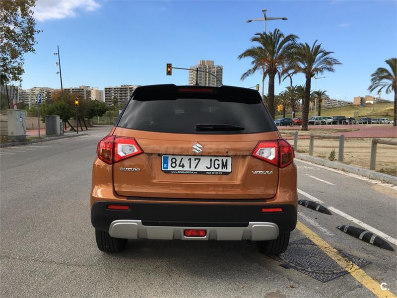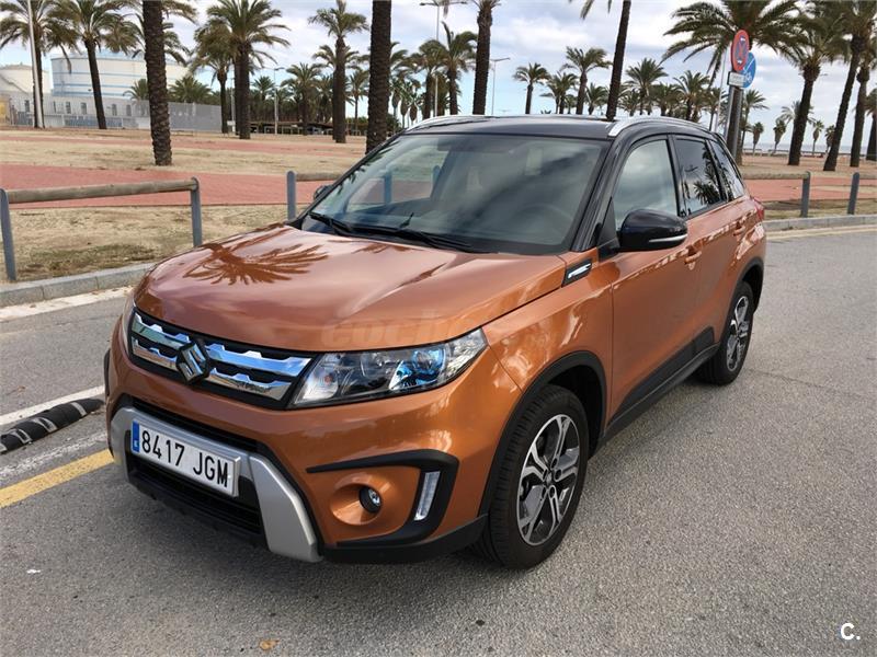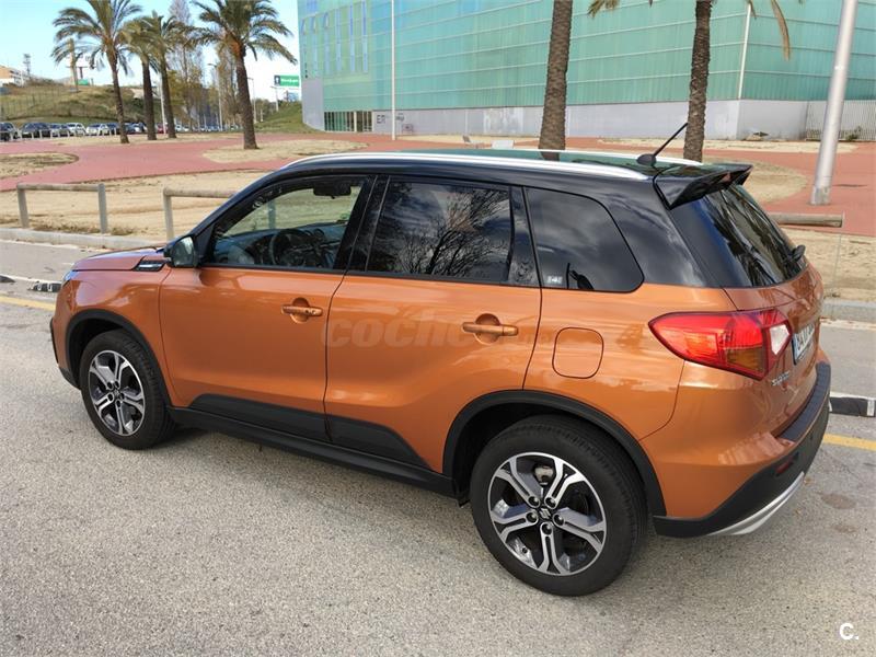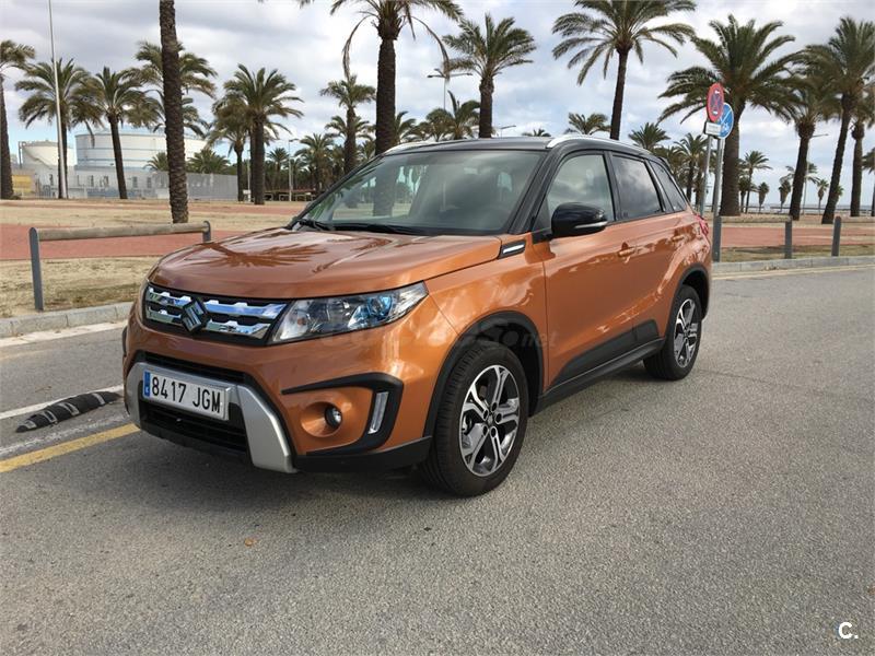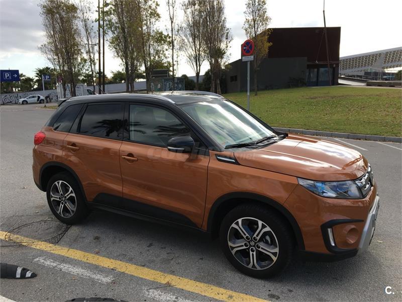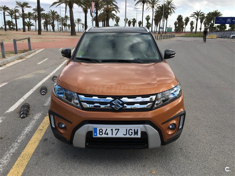 Suzuki Vitara GLX 1.6 2WD con muy pocos km (10.000), color naranja/negro. Sensor de lluvia y luces, control predictivo de frenada, control de velocidad adaptativo, sistema auto start stop, sensor de aparcamiento delantero y trasero, retrovisores electricos, pantalla táctil de 7con conexión smartphone Cámara de visión trasera Navegador, tapiceria mixta con piel, volante de cuero con botones de manos libre y audio, asientos delanteros calefactables, cristales traseros tintados, luz diurna led, boton de arranque sin llave, apertura puerta sin llave, climatozador automatico, llantas 17. Acabado con pack Rugged y spoiler trasero color negro. Ademas incluyo accesorios (piezas) para cambiar salpicadero en color naranja. Cambio de nombre incluido en el precio. Interesados contactar en (Pol).