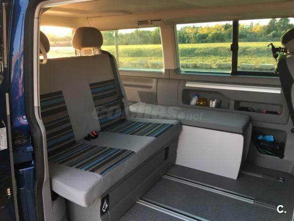 Volkwagen California Beach Edition 2.0TDI 140CV 6man. Como nueva ,super bien cuidada y con muchos extras,todos originales volkwagen. Extras: Volante multifuncion. Calefaccion estacionaria. Enchufe multimediaMEDIA-IN con cable adaptador iphone y AUX-IN para conexion de fuentes de audio externas. Climatizadorclimatic(semiaut.) y preparacion detras. Preparacion para telefonomovil para RNS315manos libres. Regulador de velocidad(Tempomat). Llantas de aleacion ligera Miyato. Funcion de navegacion RNS 315GPS. Material cartografico Europa occidental integrado. Sensor de parking delantero y trasero. Ventanillas habitaculo oscurecidas. Carcasa del retrovisor y manecillas de las puertas color de la carroceria. Toldo. Pintura metalizada Azul olimpia.
