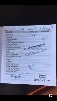 Itv recién pasada sin ningún problema. 115 cv. Cambio aceite, cambio filtro aceite y revisión hecha hace días. (Última foto) Recarga aire acondicionado, hecho. Correa de distribución y bomba de agua, hecho. Ruedas cambiadas hace meses. (La de repuesto sin estrenar) Elevalunas eléctrico, aire, radiocd Sony, ordenador de a bordo, etc. Acepto prueba mecánica. Solo un propietario mayor. Ligero golpe en el maletero que no impide que se abra para nada. Chapa, típicos rayajos a su edad. Funciona a la perfección. Ruego gente seria.