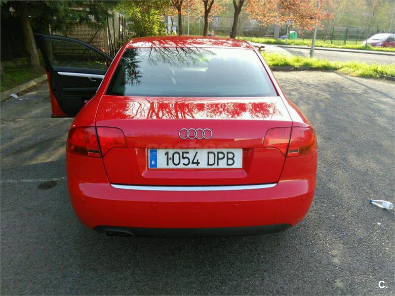 Audi A4 2.0 TDI Sline 140CV 4 puertas. Color rojo, 6 velocidades, asientos mixtos, faros de xenón, faros antiniebla, sensores de aparcamiento traseros, climatizador, elevalunas eléctricos, espejos eléctricos, asientos delanteros con regulación lumbar eléctrica, radio CD, pantalla de DVD en el techo, paquete deportivo Sline. Totalmente revisado y en perfecto estado. Todas las revisiones hechas al dia. Muy buen estado interior y exterior. Mejor ver y probarlo.