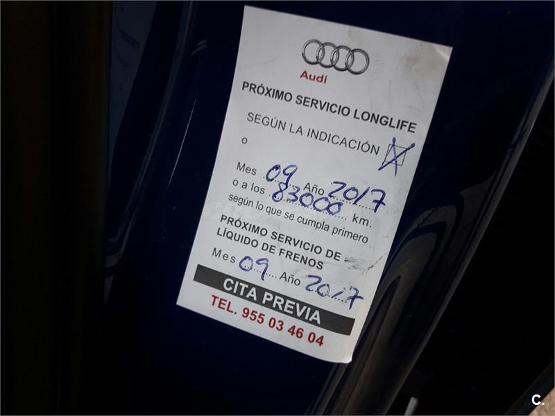NACIONAL CON HISTÓRICO DE MANTENIMIENTO COMPLETO EN CONCESIONARIO OFICIAL AUDI. EQUIPADO CON BLUETOOTH START-STOP, VOLANTE MULTIFUNCIÓN, CONTROL DE VELOCIDAD, SENSORES DE APARCAMIENTO. LUCES DIURNAS DE LED, FAROS DE XENÓN, CLIMATIZADOR BIZONA, COMANDO POR VOZ, ETC. POSIBILIDAD DE FINANCIAR. ACEPTAMOS VEHÍCULO COMO PARTE DE PAGO. UN SOLO PROPIETARIO NO FUMADOR. MEJOR VER. Kilómetros certificados. Posibilidad de entrega del vehículo en cualquier punto del país. Este anuncio no es vinculante, puede contener errores. Se muestra a titulo informativo y no contractual. Para más información consultar con el concesionario. Estamos en Pol. Industrial la Estrella, calle Herrero 25 de Coria del Río (SEVILLA). Horario de lunes a viernes de 9 a 2 y de 17:00 a 21 horas. Sabados de 10:30 a 13:30.