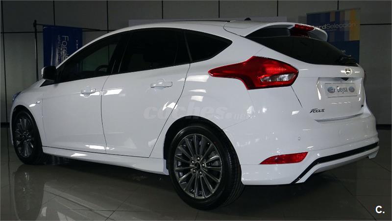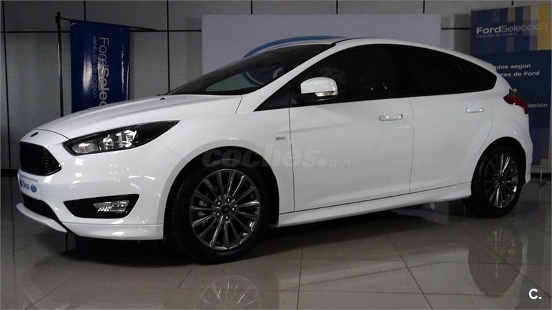 En venta Ford Focus 1.0 EcoBoost S/S 92kW (125CV) ST Line de color Blanco, un compacto perfecto por polivalencia, practicidad y versatilidad que soluciona igual de bien los trayectos más monótonos de la semana y los viajes. Todo ello con consumos ajustados y espacio para cuatro adultos y su equipaje. Sin olvidar lo último en tecnología, como el control de velocidad.