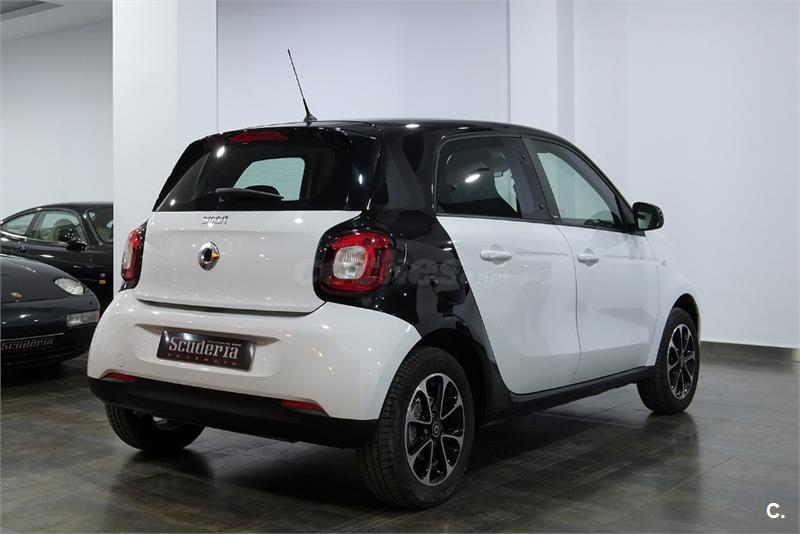 SMART FORFOUR 52 PASION 5P. VEHICULO NACIONAL. UNICO PROPIETARIO. VEHICULO NUEVO CON 4.000 KM. MATRICULADO EN 03/2016. BICOLOR BLANCO NEGRO CON INTERIOR EN TELA NEGRA ANTRACITA.3 Cilindros, 5-Velocidades ABS, Airbag del conductor, Airbag acompañante, Radio, Dirección asistida, Elevalunas eléctrico, Llantas de aleación, Cierre centralizado, Faros antiniebla, Inmovilizador, Climatizador, Control de tracción, Airbags laterales, Control de velocidad, Ordenador, ESP, MP3, Start/Stop automático, Volante multifunción, Luz diurna, Retrovisores laterales eléctricos, Bluetooth, Manos libres, ISOFIX, CD, Volante de cuero multifuncion. etc..