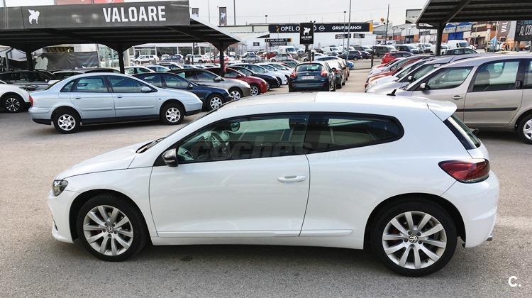 Tenemos este magnífico Volkswagen Scirocco que es un coupé de tres puertas divertidísimo y con una línea super deportiva ya que va equipado con el pack R. Éste vehículo que destaca por sus buenas cualidades dinámicas y un buen equipamiento como calefacción en los asientos, techo solar, luces automáticas, sesnor de lluvia, faros xenón, cambio automático con seis velocidades ¡y mucho más!