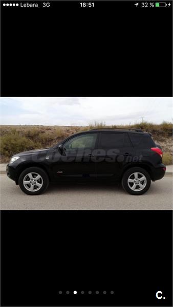 se vende toyota rav4 sol diesel 136cv con cambio manual de 6 velocidades con libro de revesiones aceite y filtros recien cambiados en muy buen estado tracción 4 aire acondicionado bizona , elevalunas electricos y tintados con el papel de homologacion cierre cenralizado radio cd mp3 con cargador de cds , volante de cuero multifunción con control de velocidad crucero espejos electricos abatibles itv recien pasada con informe ,3 llaves bola de remolque homologada y facil de quitar mano libres en muy estado interior como exterior acepto prueba mecanica transferencia no incluida en el precio