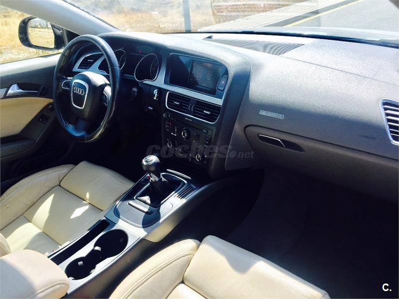 Audi A5 con paquete S5 ¡Impecable!Vehículo equipado con techo solar eléctrico,asientos deportivos eléctricos,volante multifuncion,paquete S5,faros bi-xenon,sensores de luces y lluvia,navegador de abordo,velocidad crucero...El vehículo se entrega totalmente revisado con la revisión recién pasada de aceite,filtros,frenos y cubiertas,transferido y con 1 año de garantía. Posibilidad de financiación a su medida.Se acepta vehículo como forma de pago.