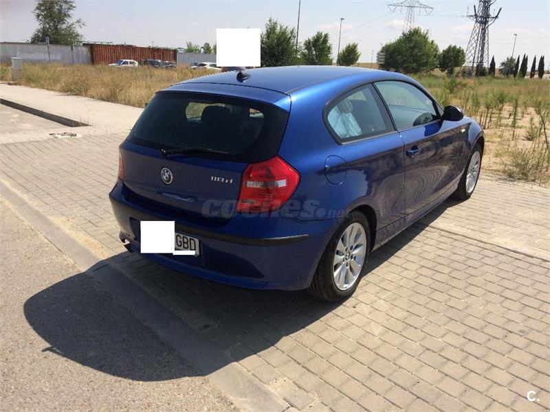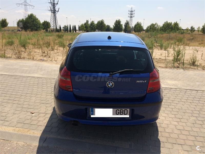 Bmw 118d 143 cv motor 2 litros gasoil manual 6 velocidades 3 puertas 122. 000 km año 2008 única conductora y propietaria. todas las revisiones realizadas en taller especialista bmw con facturas que se enseñan llantas de aleación bmw, alarma bmw, radio profesional bmw, volante y pomo cambio en cuero. consumo realmente reducido 5. 6 litros a los 100 km. se cambia por aumento de familia y quedar pequeño se estudian cambios por turismo familiar, ranchera o monovolumen en buen estado negociable llamarpor las tardes. Color Azul
