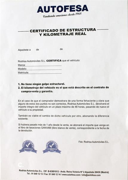 Abiertos domingos y festivos Certificado de estructura y km real 12 meses de garantía con cobertura nacional. Si te gusta te lo enviamos gratis a tu casa y además te lo financiamos en solo 30 minutos.¡Elige tu coche entre más de 900 ocasiones!y si quieres recogemos tu coche a cambio.Mira opiniones en autofesa.com/opiniones