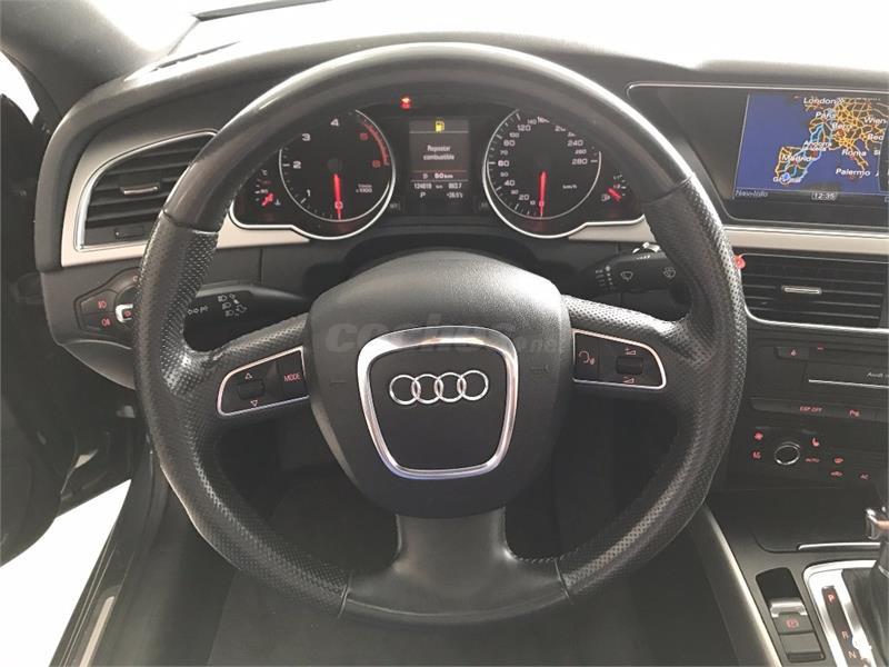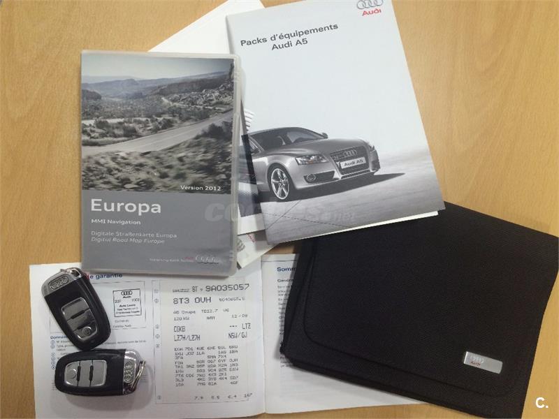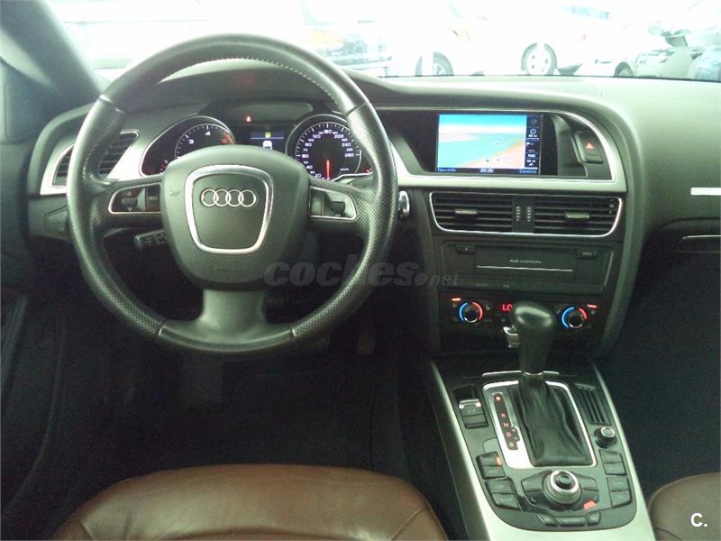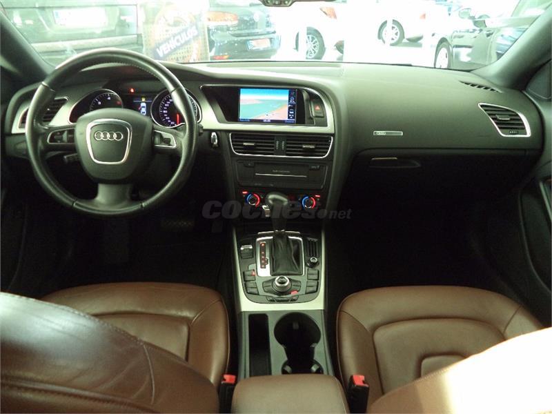AUDI A5 COUPE 2. 7TDI 163CV Matriculado 3. 02. 09 historial de mantenimiento-12 meses de garantía a nivel nacional y libre elección de taller. -posibilidad de ampliar garantia. -recogemos vehiculo como parte de pago. ---equipamiento destacado: navegador, tapicería cuero, asientos calefactables y eléctricos, conexión aux, radio cd mp3, sensor aparcamientos, faros xenon, volantemultifuncional,
