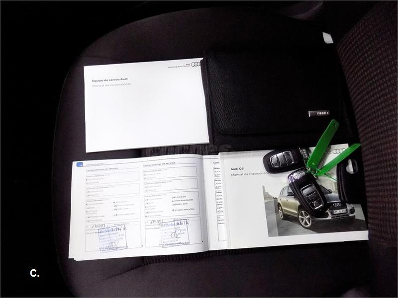 DESDE SOLO ***323€/MES*** PRECIO FINAL LLAVE EN MANO GARANTÍA DE 1 AÑO INCLUIDA, AUDI Q5 2.0 TDI quattro S-TRONIC 170 DPF, SUV MUY REPRESENTATIVO MUY BIEN CONSERVADO, SUPERCOMO Y AMPLIO. Equipado con ordenador de abordo, climatizador automático dual, radio/cd con entrada multimedia, bluetooh, control por voz, control de descenso, ESP, volante multifunción, luz diurna, faros antiniebla, reposa brazos central, elevalunas eléctricos, retrovisores calefactables y plegables electricamente, 6 airbag, llantas de aleación, Isofix, barras techo, etc...2 LLAVES, LIBRO DE REVISIONES Y MANUALES