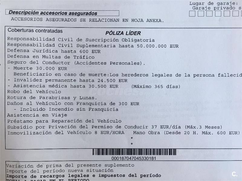 Se transferirá seguro con Mapfre, a todo riesgo, franquicia 300 y fecha de vencimiento en Junio.