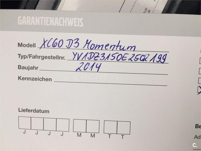 VOLVO XC60 2.0D 136CV MOMENTUM. NO FUMADOR. Estado muy cuidado como si fuera nuevo. Revisiones pasadas en concesionario oficial Volvo. Equipado con: Cambio Automático, Tapicería Tela/Cuero, Asientos calefactables, Climatizador Bizona, Navegador, Sensor de lluvia y luces, Sensor de Aparcamiento trasero, Faros Xenón con Led, Bluetooth, Pantalla trasera de DVD Alpine con usb, Llantas de aluminio de 17".