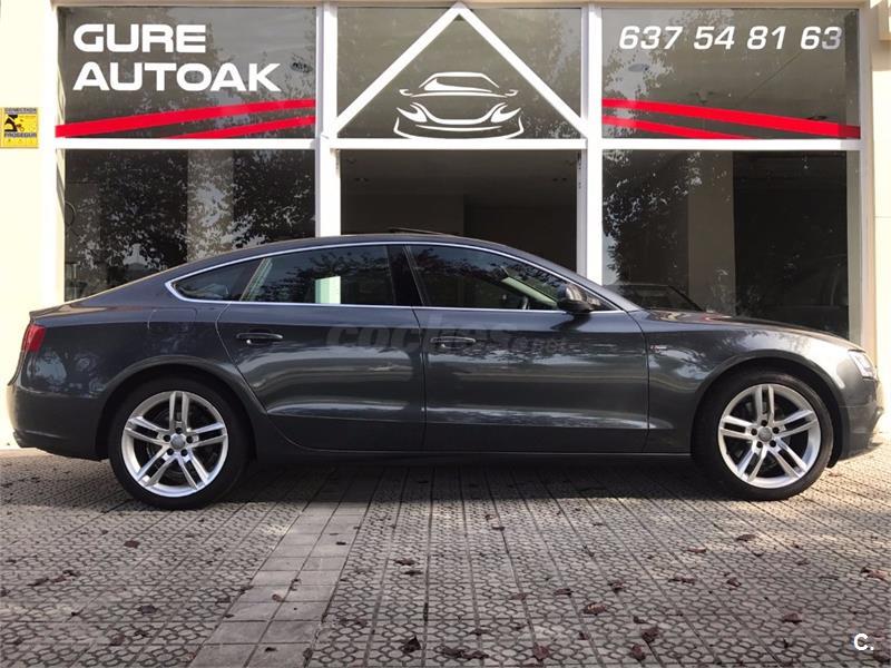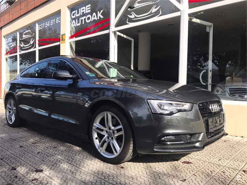 Audi A5 3.0 TDI Sportback S-line con libro de revisiones,extras a detallar: faros inteligentes SMART BEAM,paquete deportivo S-line interior y exterior,asientos con tapiceria de cuero/tela de color negro,equipo de sonido BANG&OLUFSEN,cámara de marcha atras/sensores de aparcamiento delanteros y traseros,volante de cuero y acabados deportivos S-LINE,multifunción,levas;espejos eléctricos abatibles y desempañables,llantas de aleación ligera de 19",techo eléctrico,llaves manos libres,Star-Stop.