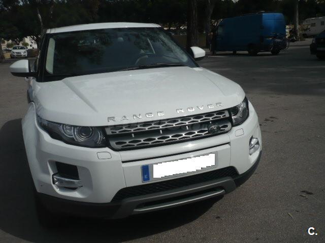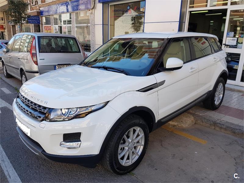 RANGE ROVER EVOQUE 2.2 D 150 CV PURE. Un solo propietario procedente de particular. Precio que incluye entrega del vehículo, financiación de 5 años mínima y a partir de 15. 000 €. PVP sin financiación 30. 900 €. El precio incluye: iva, garantía de un año, transferencia y revisión pre-entrega. Dispone de garantía oficial hasta mayo de 2018. Más de 400 metros de exposición con parking para clientes. Kilómetros certificados por escrito. Vehículos inspeccionados en más de 100 puntos. Fácil financiación sin entrada. Retomamos su coche o moto y se lo descontamos del precio. Alto de gama: tapicería de cuero, parktronic, espejos eléctricos y abatibles, llantas de 17”, bluetooth, climatizador bizona, asistente de aparcamiento, volante multifunción, faros de bixenon, control y regulador de velocidad, 6 velocidades, abs, esp, alto de gama. Libro de revisiones en el servicio oficial. Color blanco.