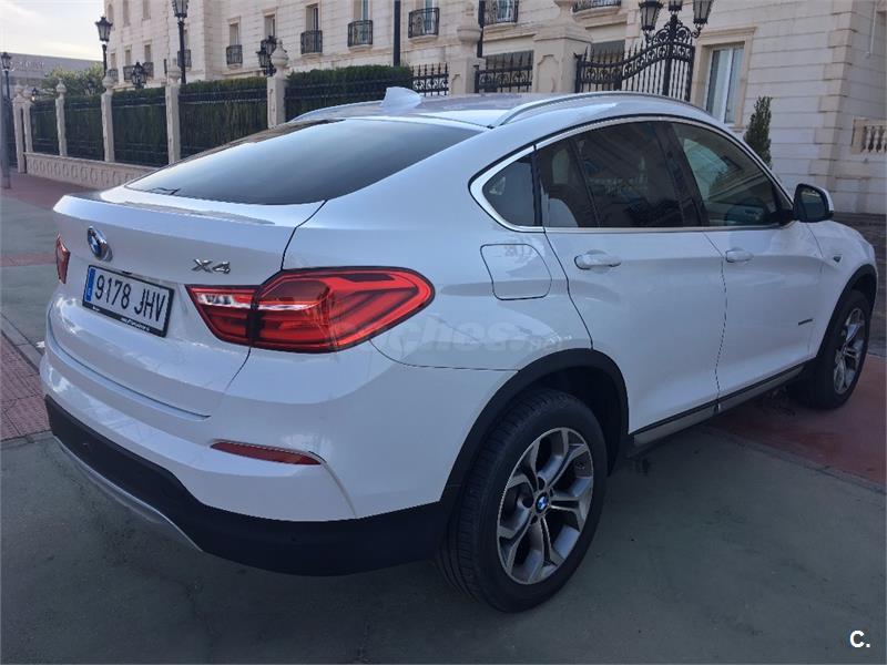 BMW X4 Xdrive 30d 258cv ... Cambio AUTOMATICO 8 VELOCIDADES con levas en el volante tipo F1 y 4 modos de conduccion(ECO-CONFORT-SPORT-SPORT+) ... NAVEGADOR profesional a color CON CAMARA DE VISION TRASERA ... FAROS XENON con LED de luz diurna ... ASIENTOS EN CUERO 'Nevada' Mokka/aplicación y repujado Schwarz ... PARKTRONIC del. y tras. ... PORTON TRASERO CON APERTURA Y CIERRE ELECTRICO ... CLIMATIZADOR DIGITAL BIZONA ... TLF por BLUETOOTH ... ASISTENTE cambio de carril y Asistente de luz ... Espejos retrovisores interior y exteriores con ajuste automático anti-deslumbramiento y ABATIBLES ... MOLDURAS interiores Dark Copper de brillo intenso ... Carriles longitudinales para la baca Aluminium satinado ... ECT ... KM CERTIFICADOS ... PVP 32.995€ +21% IVA=39.995€ ... TRANSFERENCIA +150€ Y GARANTIA 12 MESES OPCIONAL + 1.000€ ...